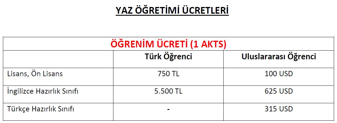 • Yaz öğretimi, tüm öğrenciler için ücretlidir. AKTS üzerinden hesaplanır.