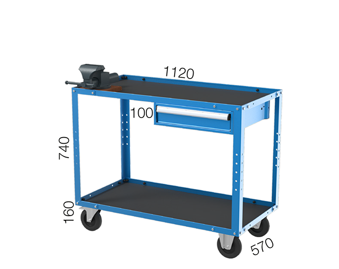 2 Raflı 1 Çekmeceli Mengeneli taşıma arabası.