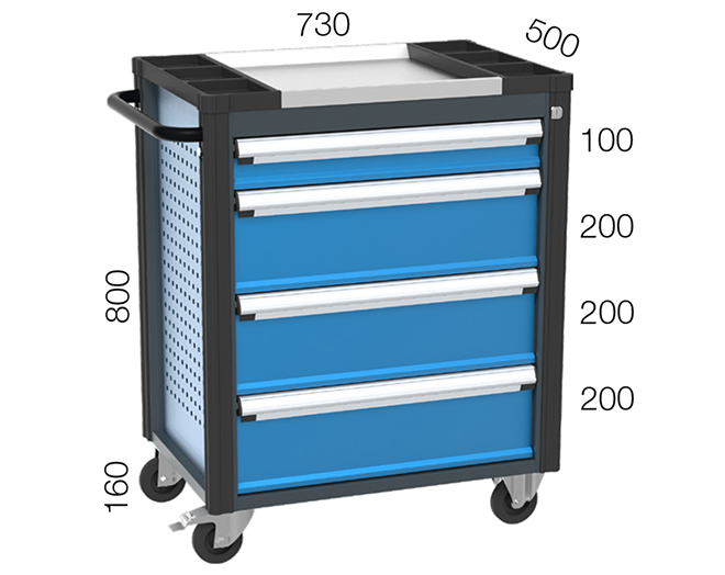 4 çekmeceli takım arabası Ölçüleri: 730 x 500 x 960 mm