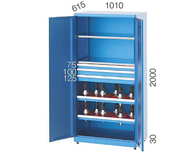 Welded, strong, steel construction cabinet.