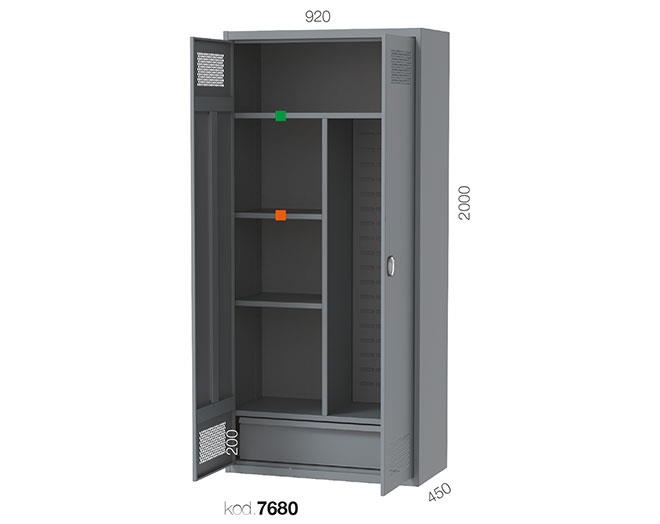 Furnished with non-welded, adjustable shelves with a high bearing capacity, locking doors.