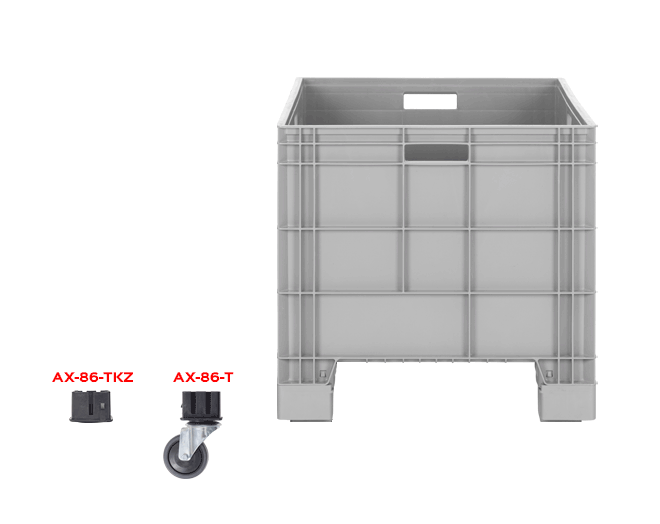 By attaching the legs of the AX-8650 and AX-8639 crates, it enables them to rise 80 mm and be used with pallet trucks and forklifts.