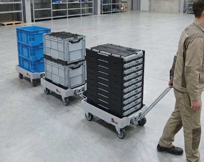 The DOLLY 4060 crate dolly is designed for safe, fast, and efficient transportation of crates in warehouse and logistics environments. With its compact dimensions of 420 × 600 × 190 mm, it provides excellent maneuverability in narrow and confined spaces, helping improve operational efficiency.