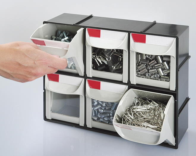 Plastic drawer boxes facilitate storage and stock control as well as shorten the assembling processes.