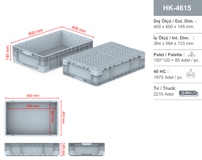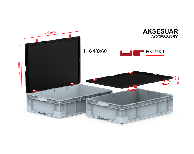 - It can be used with a locked lid by attaching the HK-40X60 lid and HK-MK1 lock set.