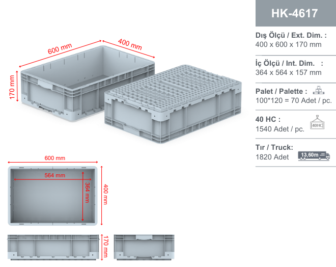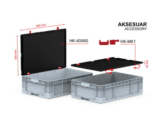 - It can be used with a locked lid by attaching the HK-40X60 lid and HK-MK1 lock set.
