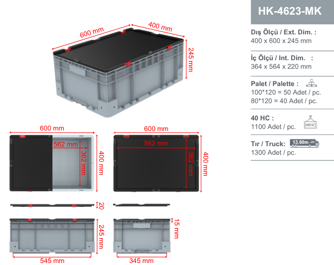 HK-4623-MK 400X600X245 HEAVY DUTY CRATE