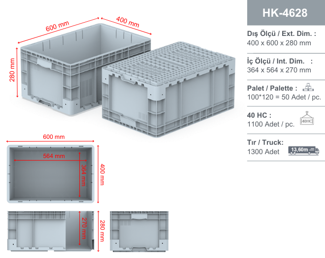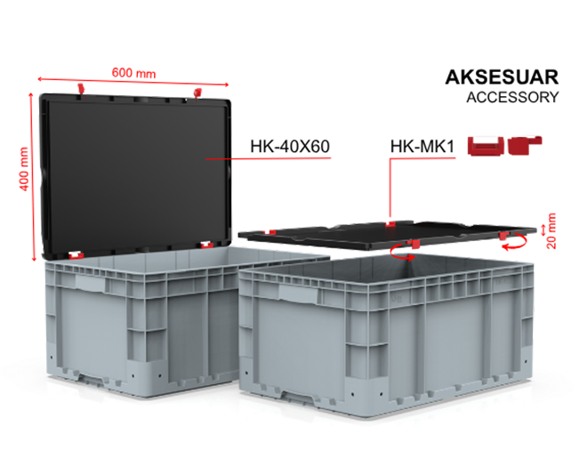- It can be used with a locked lid by attaching the HK-40X60 lid and HK-MK1 lock set.