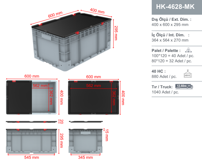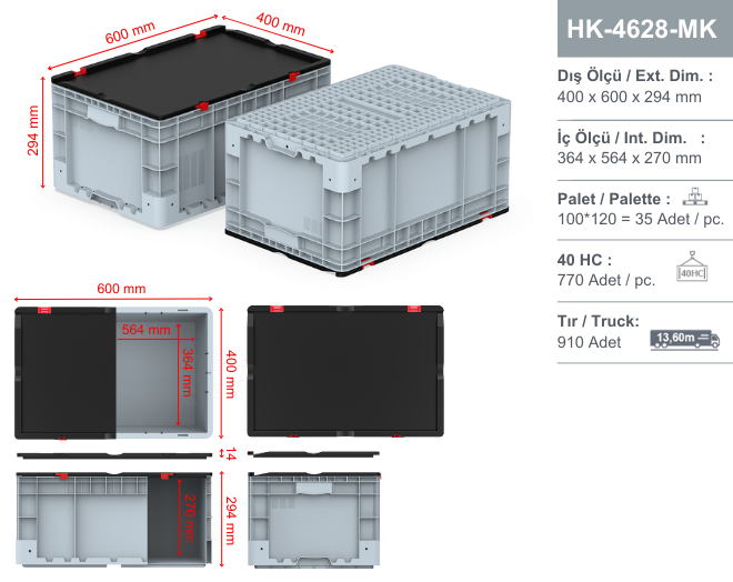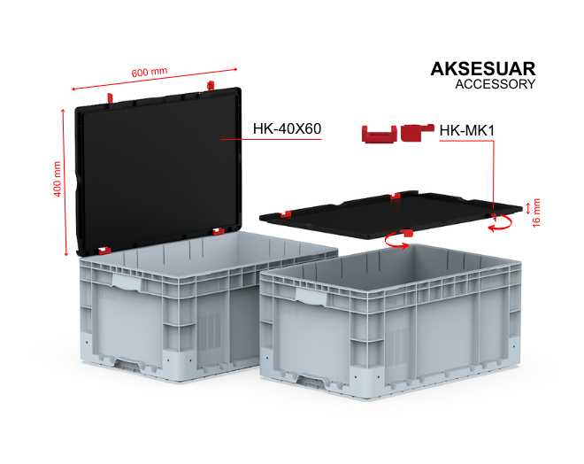 HK-4628-MK 400X600X295 ATTACHED LID CRATE