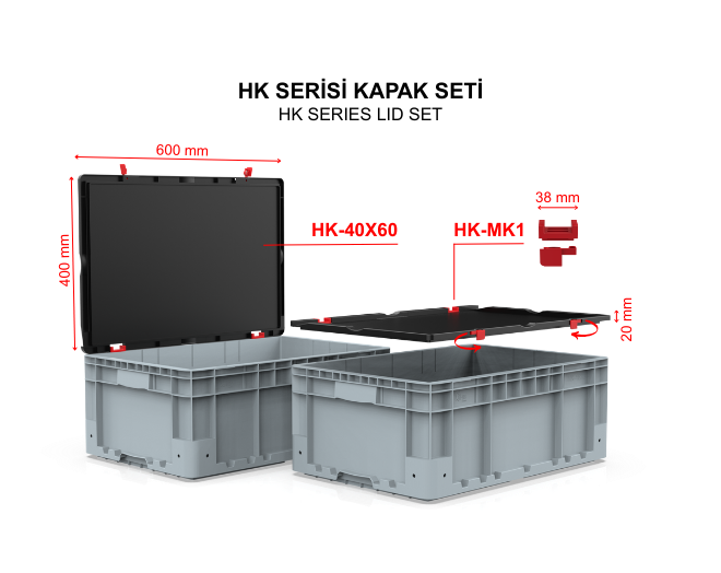 HK-series 400x600 mm crates compatible lid and lock set Used by attaching HK-4623, HK-4628, HK-4632, HK-4642 crates
