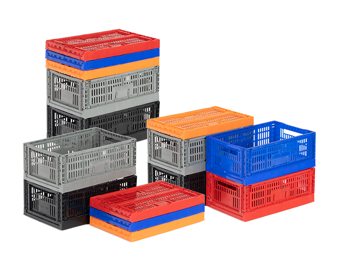Plastic foldable crates are produced with PPC. With their ergonomic structure they save space when folded and stacked.