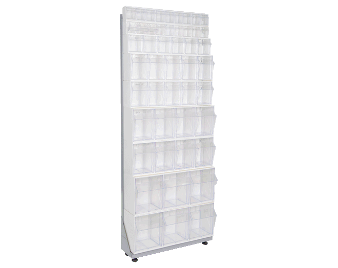 Plastic drawer boxes facilitate storage and stock control as well as shorten the assembling processes.
