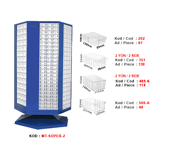 | 2 SIDE 351 DRAWER BOX | : | 138 PIECES |