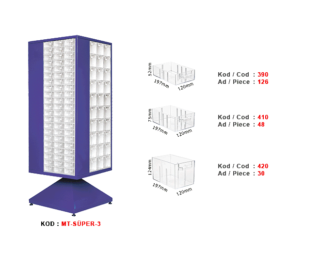 | 2 SIDE 390 DRAWER BOX | : | 126 PIECES |