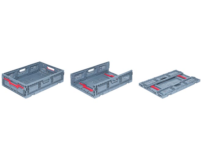 Plastic foldable crates are produced with PPC. With their ergonomic structure they save space when folded and stacked.