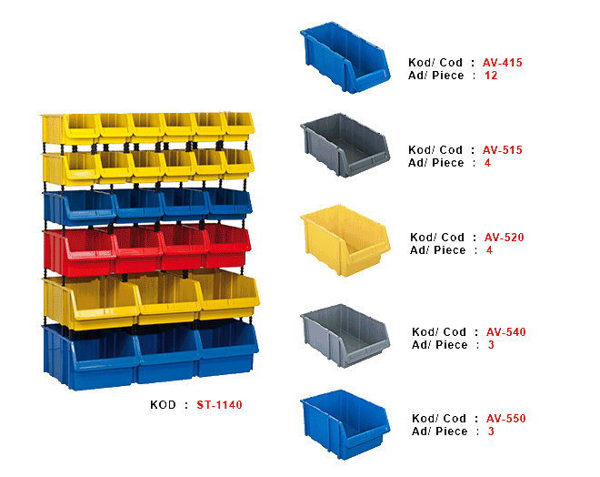 | AV-415 STACKING BINS | : | 12 Pieces |