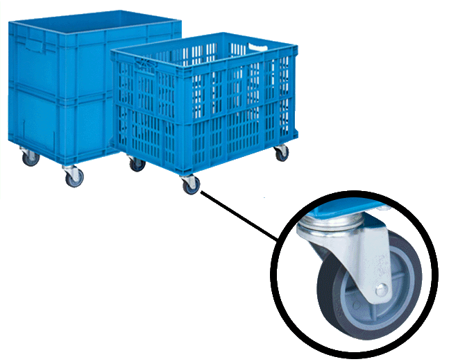T-50 rotaring wheels can be montaged crates for faster transport and ergonomy. T-50 wheels are suitable to use wtih HP-4615 , HP-4617 , HP-4622 , HP-4628 crates.