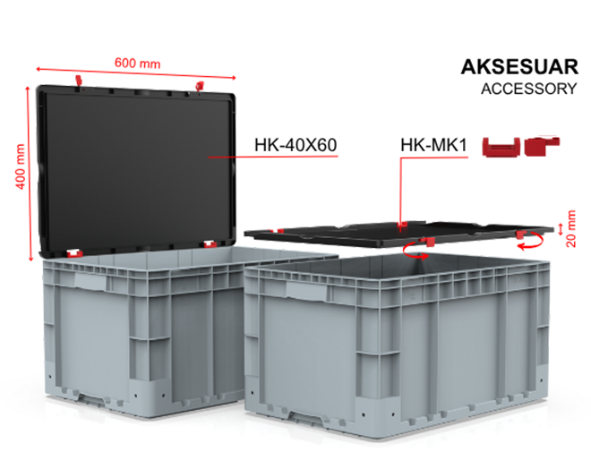 - HK-40X60 kapak ve HK-MK1 kilit seti takılarak, Kilitli kapaklı olarak kullanılabilir.