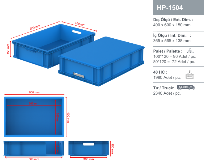 AX-40X60 ve HP-41X61 kapakla kullanılabilir. Kapaklar üzerindeyken de üst üste istiflenebilir.