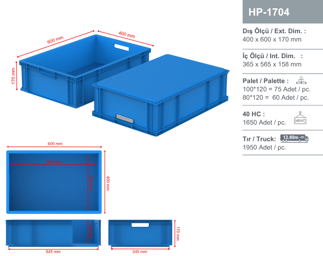 AX-40X60 ve HP-41X61 kapakla kullanılabilir. Kapaklar üzerindeyken de üst üste istiflenebilir.