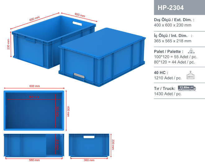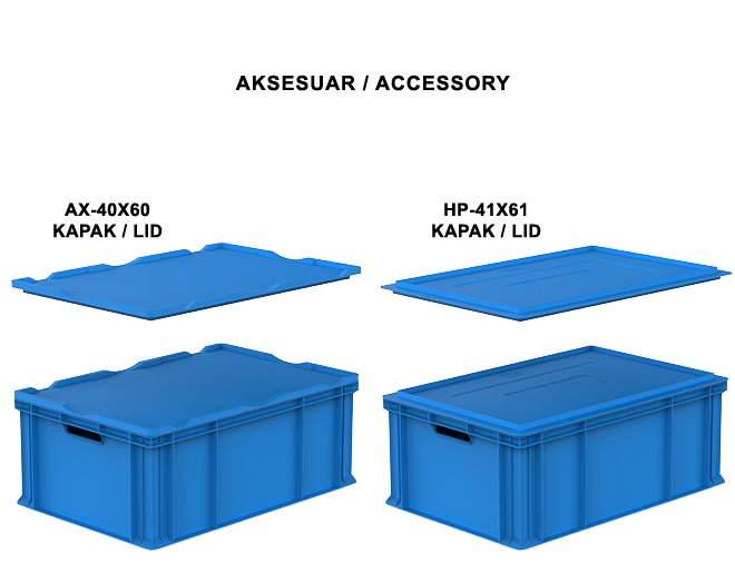 AX-40X60 ve HP-41X61 kapakla kullanılabilir. Kapaklar üzerindeyken de üst üste istiflenebilir.