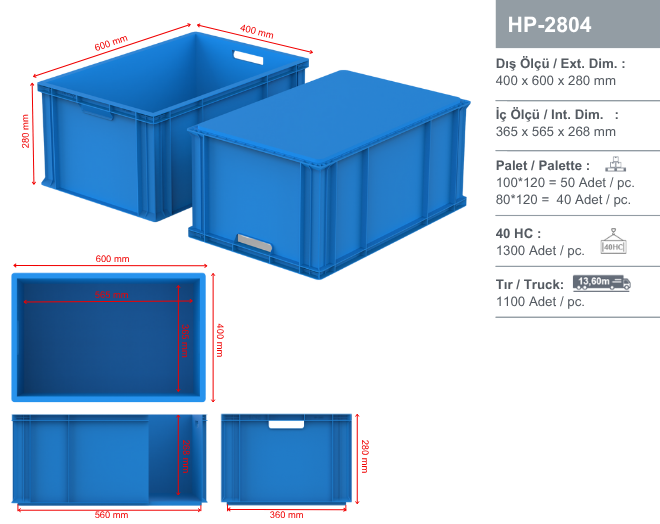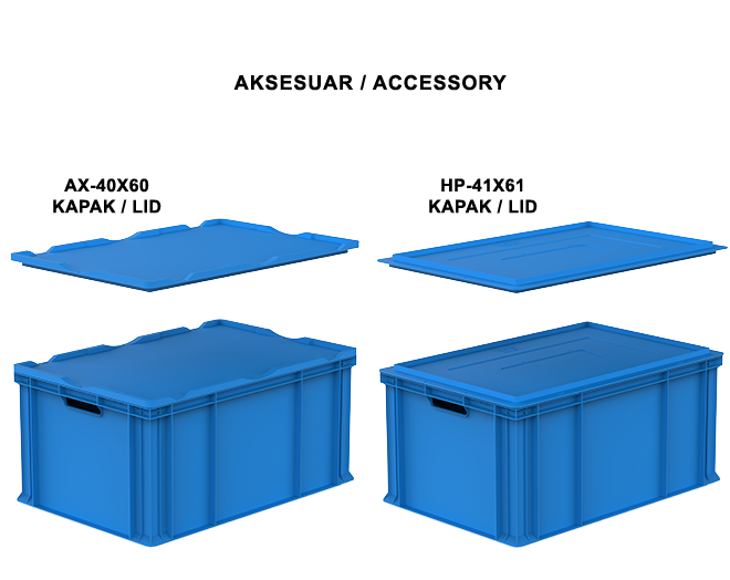 AX-40X60 ve HP-41X61 kapakla kullanılabilir. Kapaklar üzerindeyken de üst üste istiflenebilir.