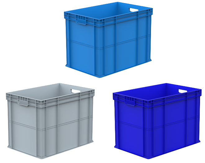 Plastik yanları ve altı kapalı kasa Dış ebatları: 400x600x450 mm