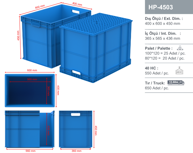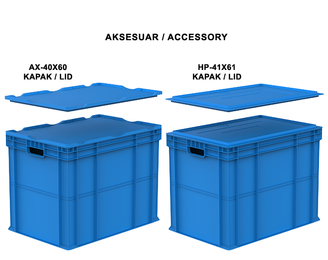 AX-40X60 ve HP-41X61 kapakla kullanılabilir. Kapaklar üzerindeyken de üst üste istiflenebilir.