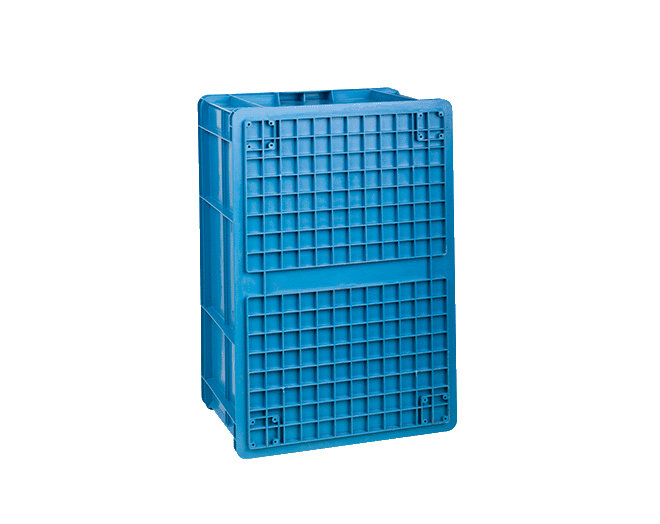 Plastik menteşeli kapaklı, yanları ve altı kapalı kasa Dış ebatları: 400x600x345 mm