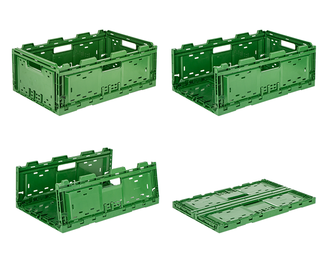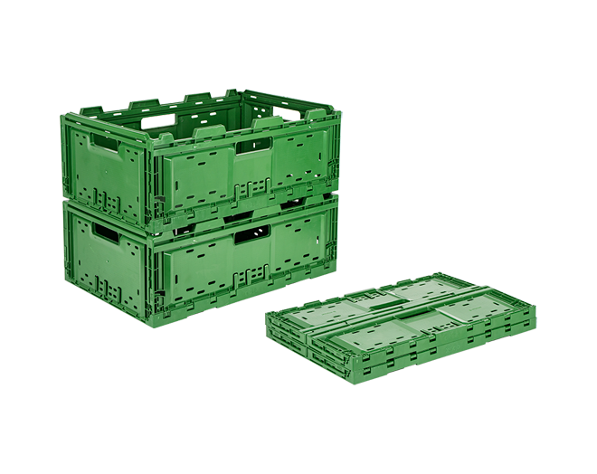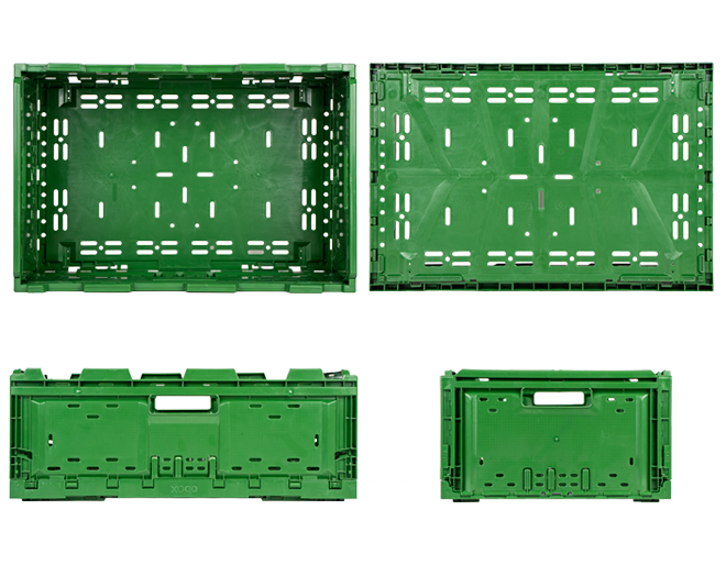 Plastik yanları ve altı delikli katlanır kasa Dış ebatları: 400 x 600 x 230 mm